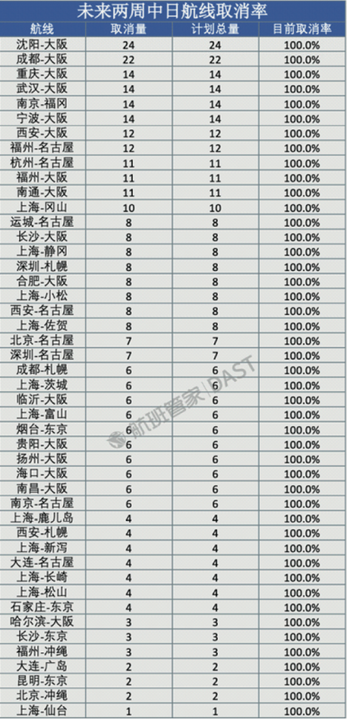 已达 2195 班次,航班取消率为 40.4%。根据航班管家数据显示,未来两周计划内有 46 条中日航线已取消全部航班。若有航班变动,旅客可通过航班管家 App查询具体航线运行信息。